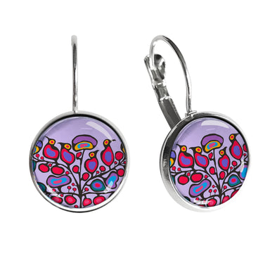 Woodland Floral designed by Ojibwa artist Norval Morrisseau. These beautiful dangle earrings are 3 cm long and the dome's diameter is 1.5 cm. They ...