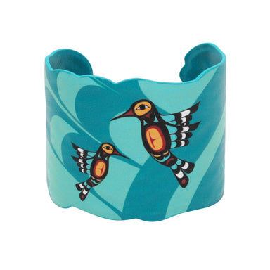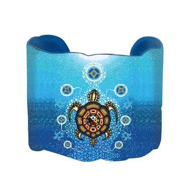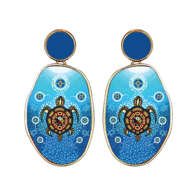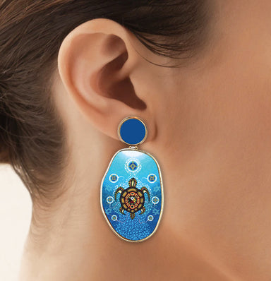 Vegan leather jewellery comes with headers and backing cards that features the name of the artist and a description of the artwork.
